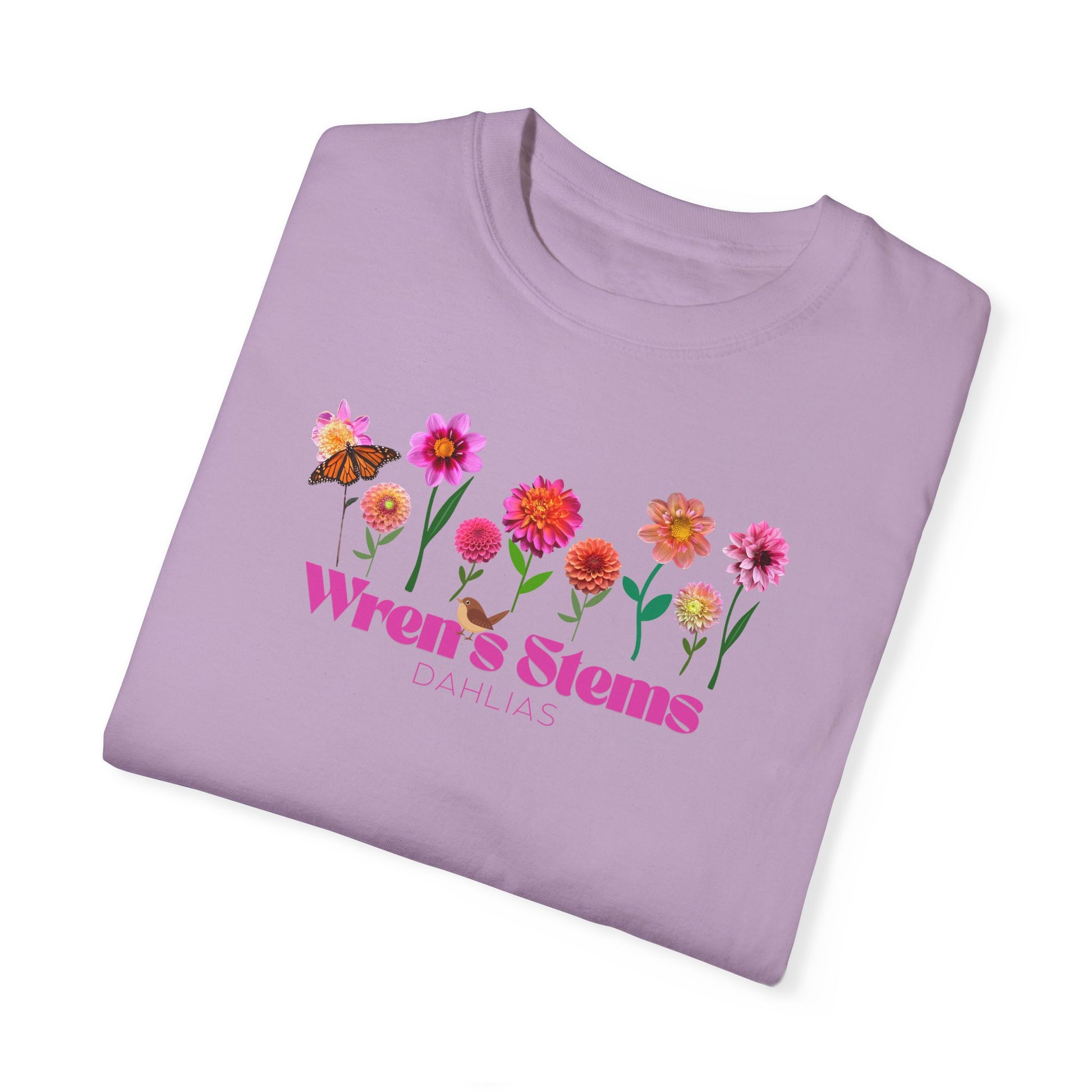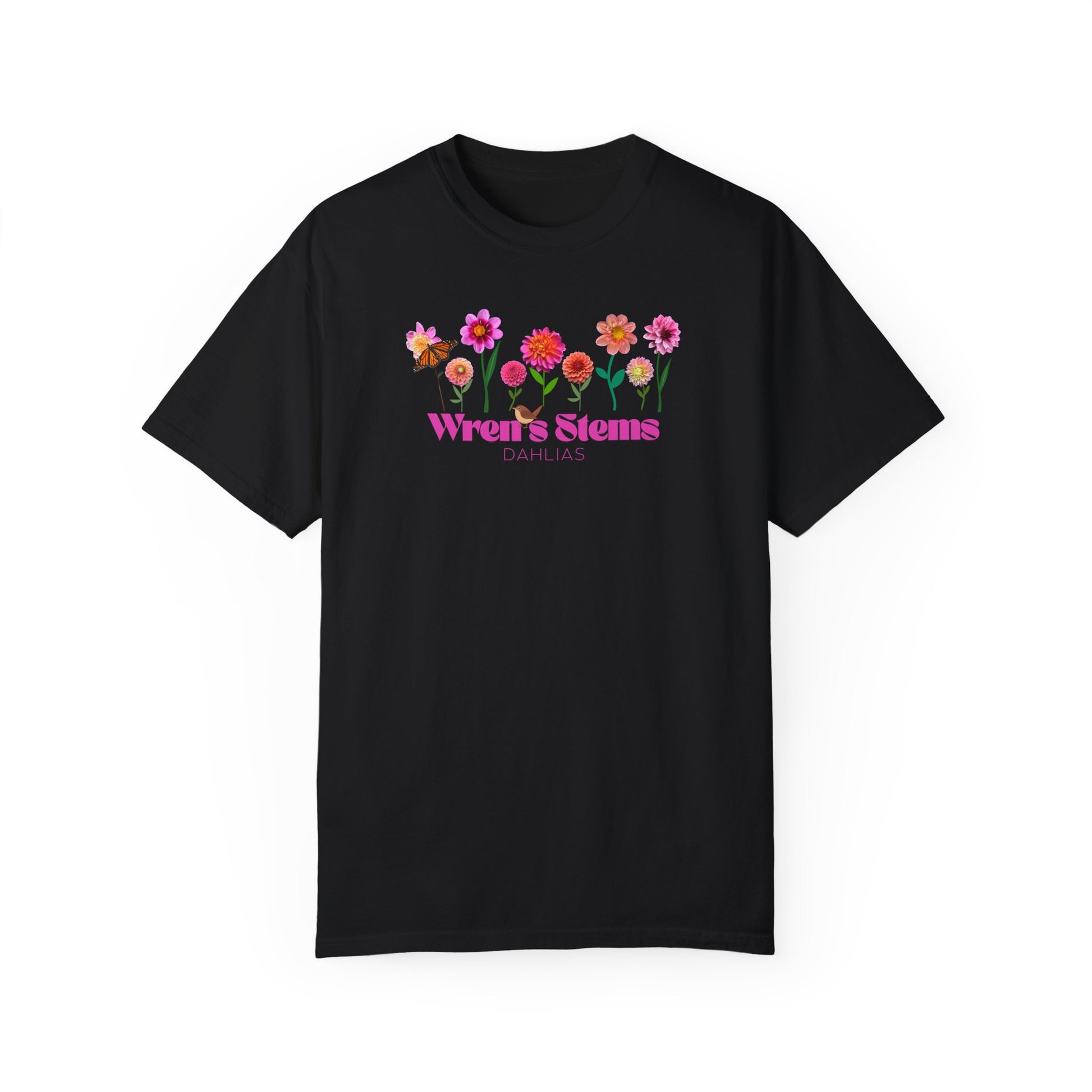 Dahlia Floral Garden T-Shirt for Nature Lovers, Gift for Her, Spring Style, Wren's Stems Dahlias, Summer Vibe