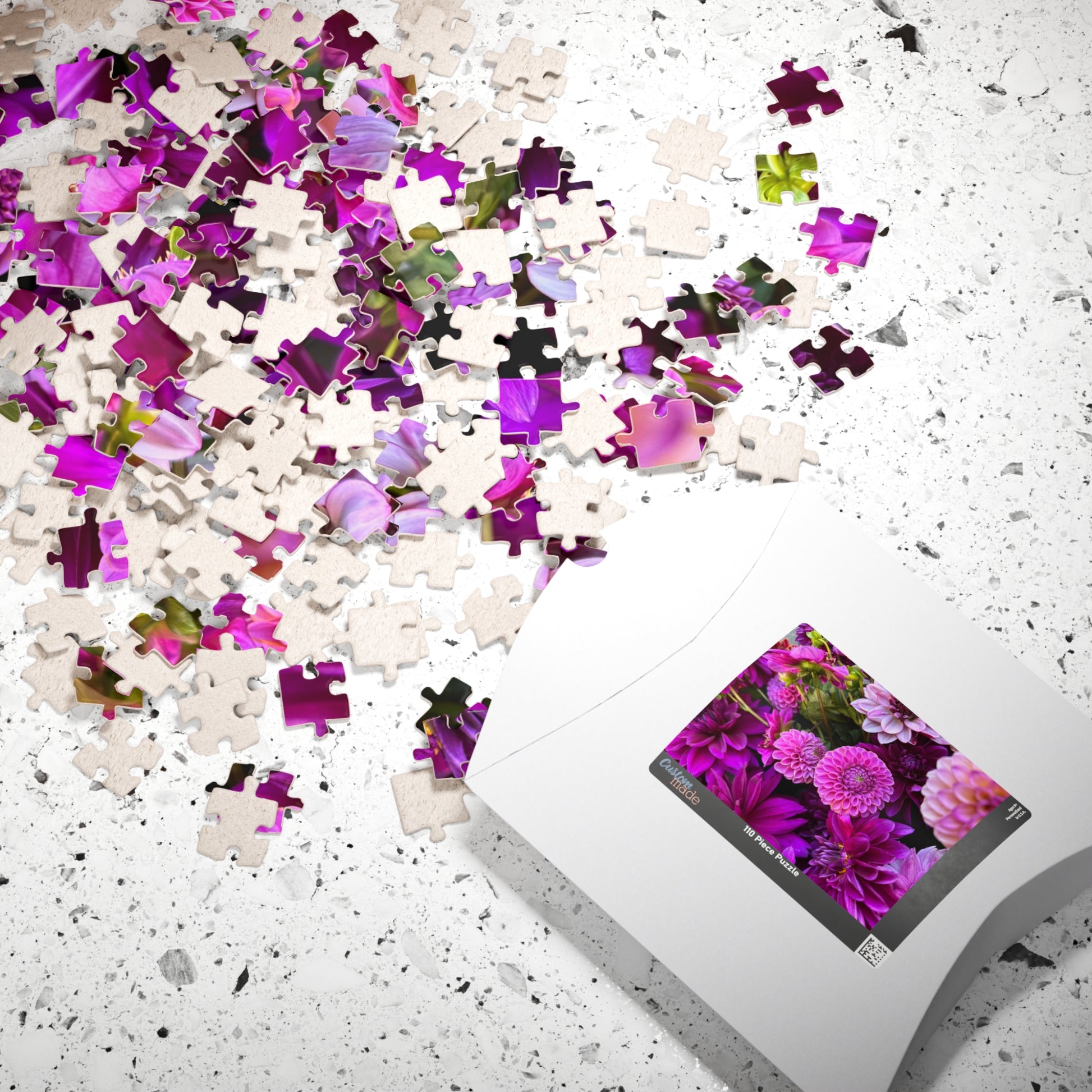 Purple Dahlia Flatlay Floral-themed Puzzle (110, 252, 520, 1014-piece) - Perfect for Relaxation and Family Bonding