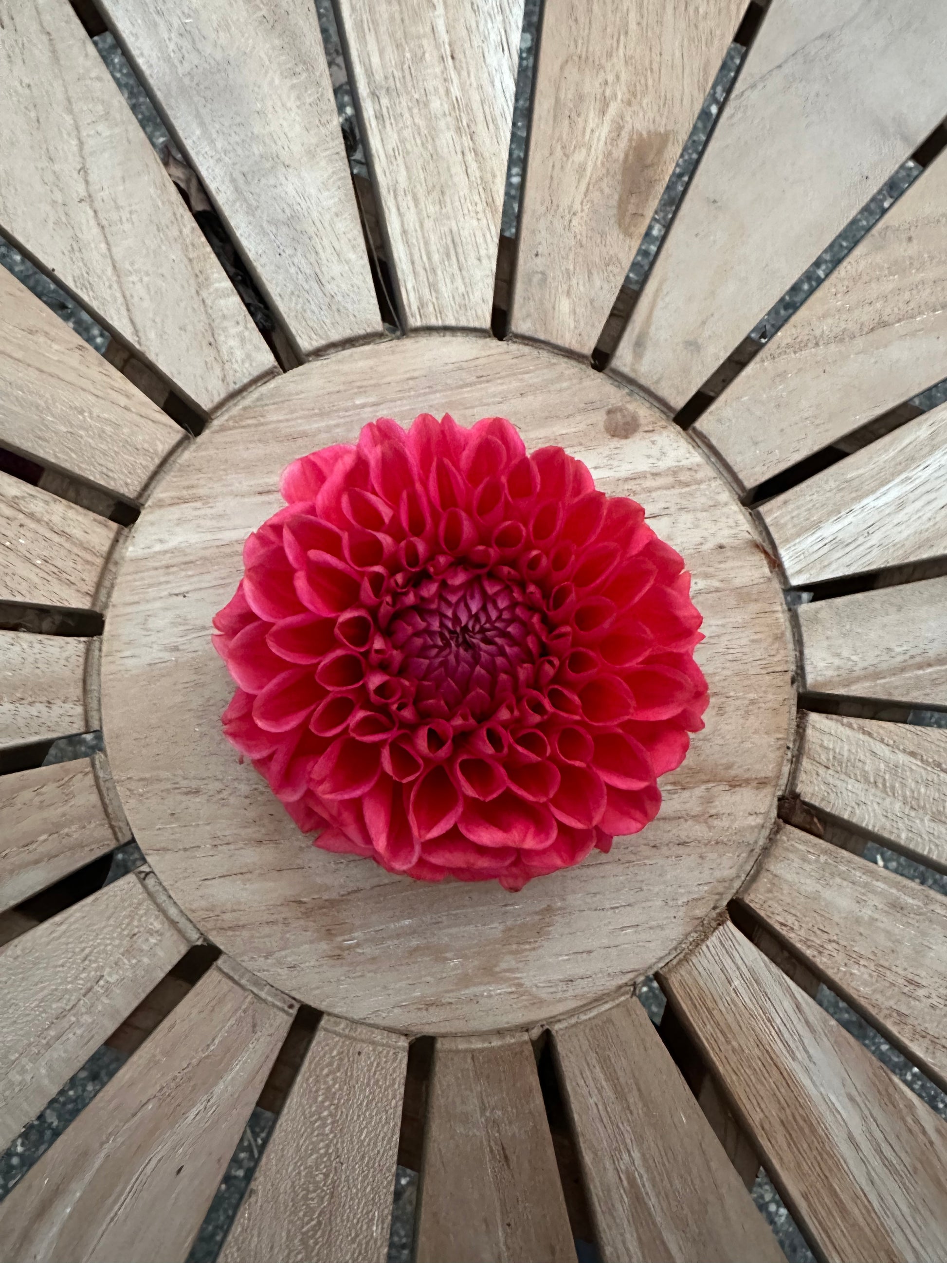 Bright Coral/Red Formal Decorative, 4 inch blooms, 4 foot tall plants for us